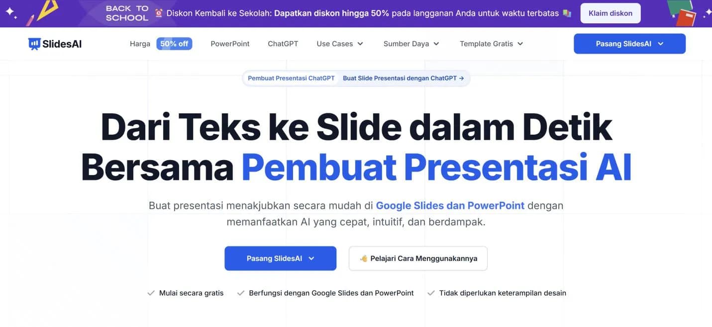 - SlidesAI dapat langsung terintegrasi dengan Google Slides