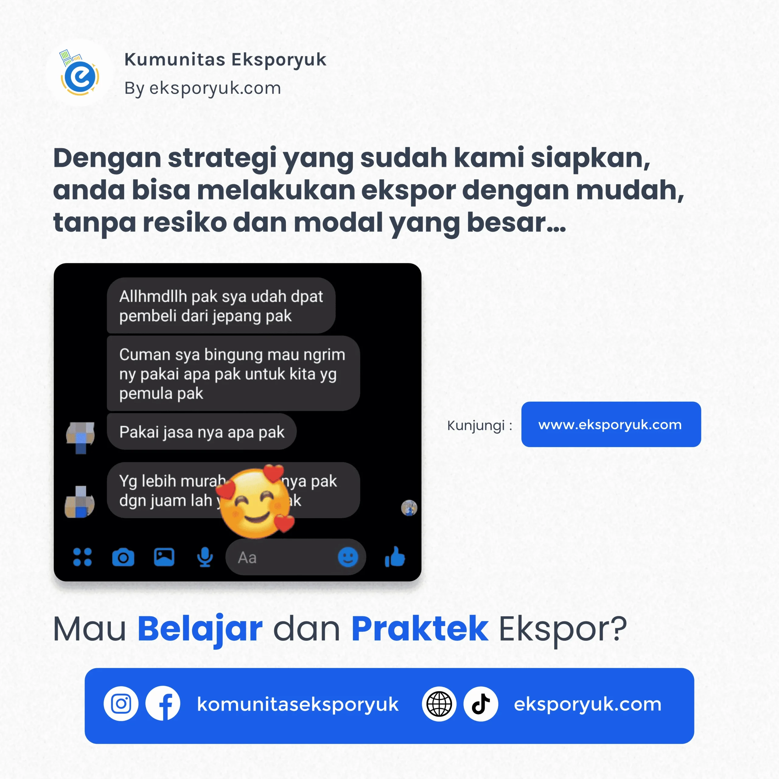 Menggunakan sosial media sebagai aplikasi mencari buyer luar negeri pastinya perlu dibarengi dengan bahasa yang sesuai, yaitu Bahasa Inggris.