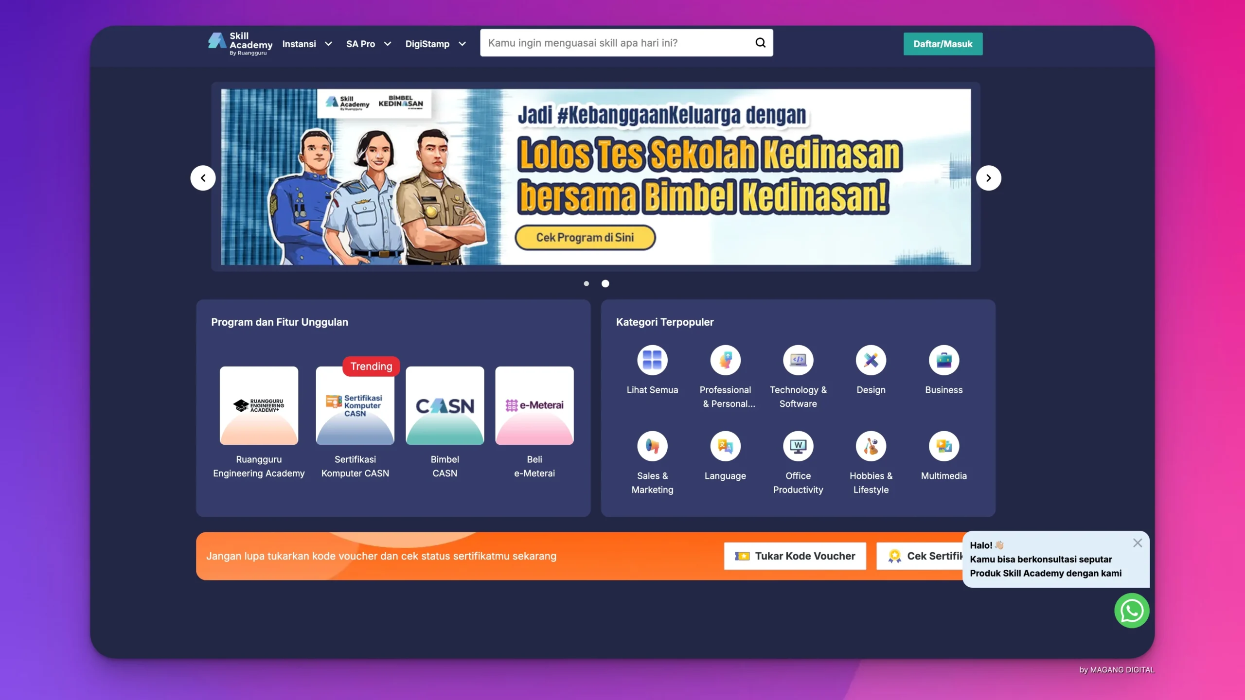 Kuasai hardskill, softskill di era canggih sekarang ini dan dapatkan bimbingan karier terlengkap untuk menjadi talenta digital yang siap kerja.